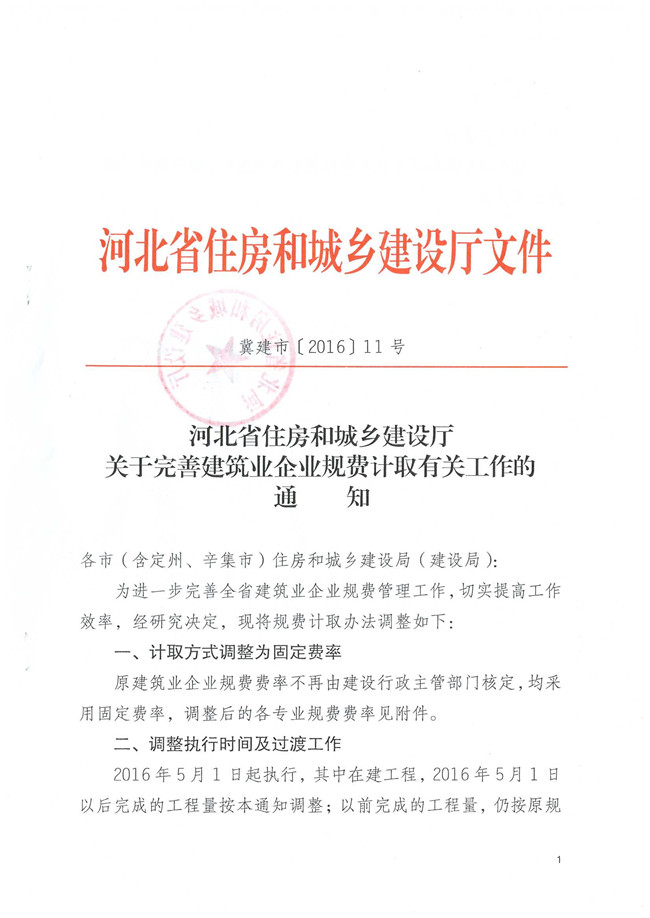 河北省住房和城乡建设厅关于完善建筑业企业规费计取有关工作的通知