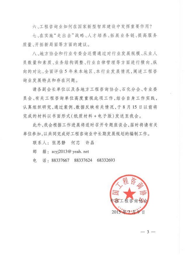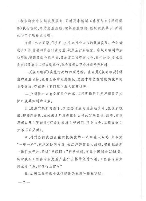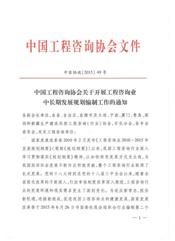 中国工程咨询协会关于开展工程咨询业中长期发展规划编制工作的通知