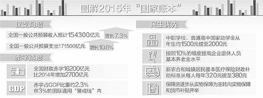 今年是新预算法实施的第一年,社会各界普遍关注:2015年的“国家账本”收支安排有哪些亮点?在稳定经济增长、保障和改善民生方面,积极的财政政策如何发力?