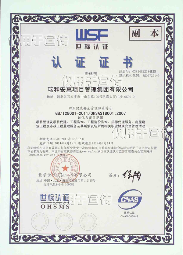 职业健康安全证书