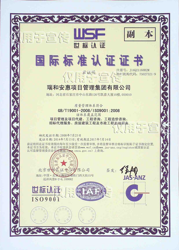 质量管理体系证书