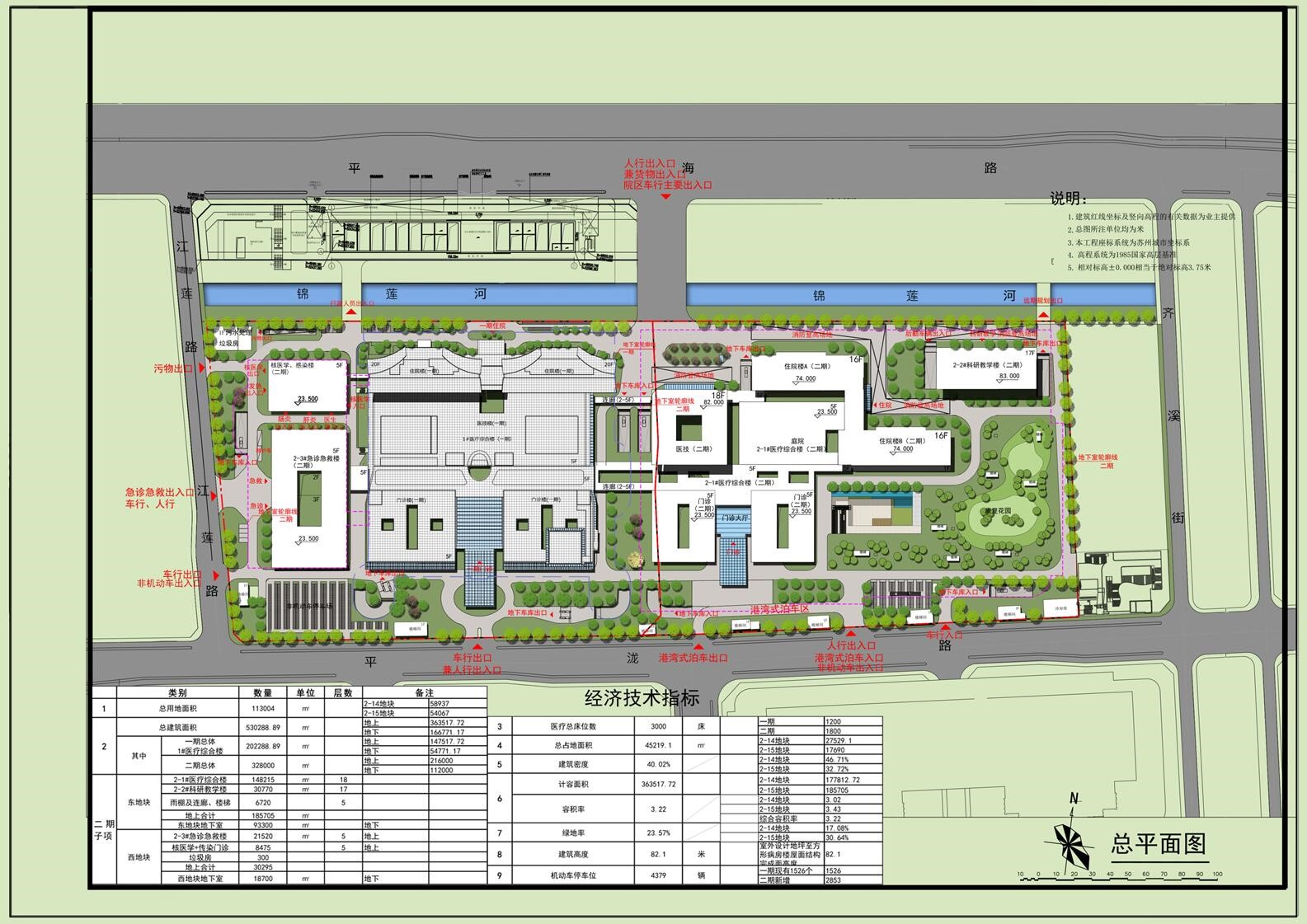 项目位于姑苏区平海路899号(一期项目东侧),占地面积约54067平方米,总建筑面积328000平方米,其中地上建筑面积约216000平方米,共18层;地下建筑面积约112000平方米,共2层。项目建设内容包括门急诊、医技、住院、科研、机动车库等用房,拟规划床位1800张。项目总投资约28亿元,施工工期约4年。