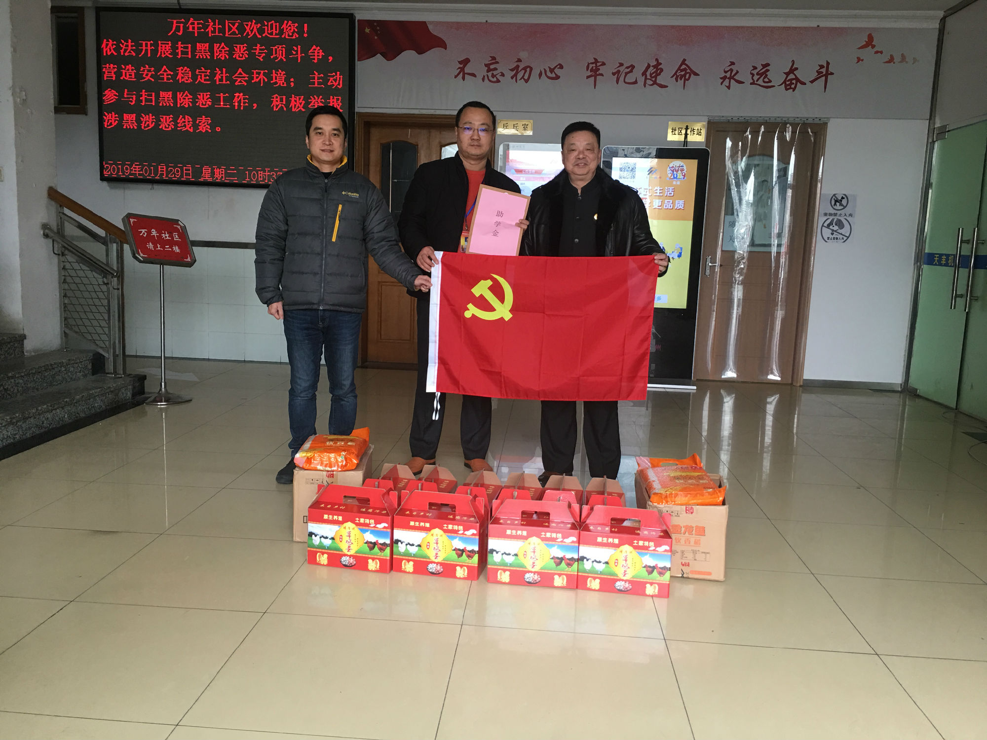 2019年1月30日,公司总经理王燕鸣一行走访万年社区,对公司扶贫帮困的十户居民进行年底帮扶慰问,为他们送去助学金及慰问品。
